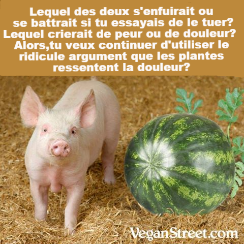 Ce que les adorateurs du « cri de la carotte » oublient bien souvent, c’est que pour élever et nourrir les animaux destinés à la consommation humaine il faut des végétaux… L’élevage est un des postes de l’industrie qui consomme le plus d’eau et de matières premières végétales au point d’être aujourd’hui responsable de crises alimentaires ou de conflits dans le monde. Par conséquent reprocher aux végétalistes de ne pas se soucier de la souffrance des végétaux reviens à admettre également qu’entant que carnivore assumé vous ne vous en souciez pas non plus. Vous vous faites du souci pour les plantes ? Devenez végane, vous en exterminerez moins ! En savoir plus sur l’écologie et le véganisme